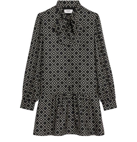 Celine's Basque mini dress in silk twill showcases a classic fit that flatters the silhouette. Its mini length is perfect for any occasion, while the lavaliere collar adds a touch of elegance. Finished with a side zip and hook-and-eye closure, it features six Celine's Paris-engraved buttons, ensuring a refined look.