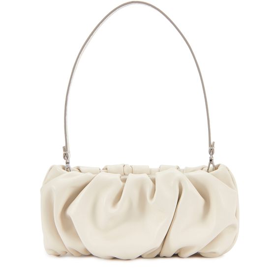 With the Bean bag, Staud presents a piece with an elongated design. This handbag made of soft, pleated leather has a removable shoulder strap.
