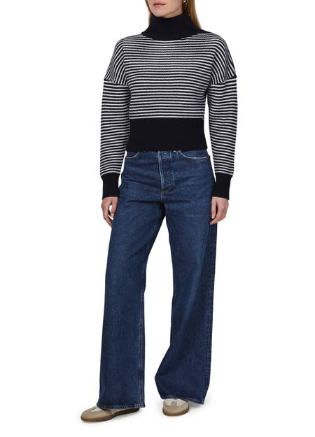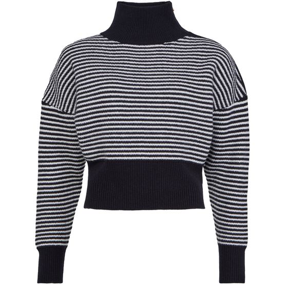 Max Mara's Bessica turtleneck sweater showcases a regular length, perfect for layering. Its high-neck design offers warmth, while the long-sleeved silhouette features cuffed sleeves for a polished finish. The striped print adds a playful touch, making it an ideal choice for both casual outings and sophisticated gatherings.