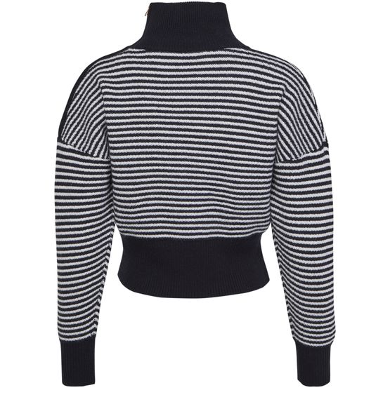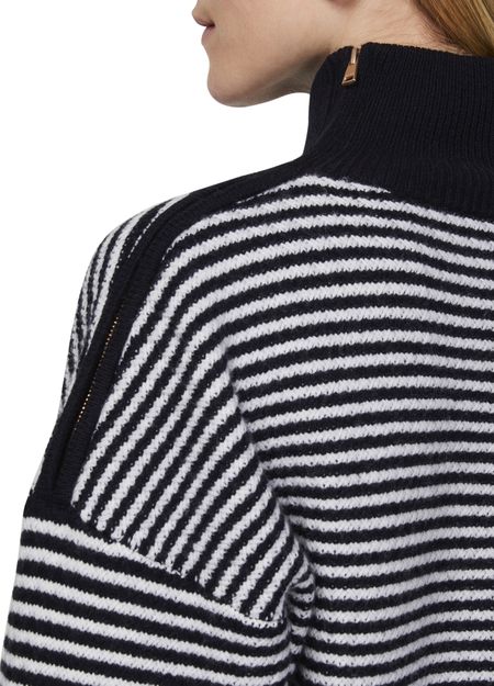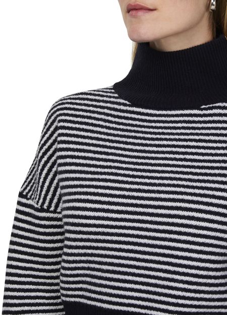• Description : regular length, high-neck, long-sleeved, striped print, all-over print, cuffed sleeves.