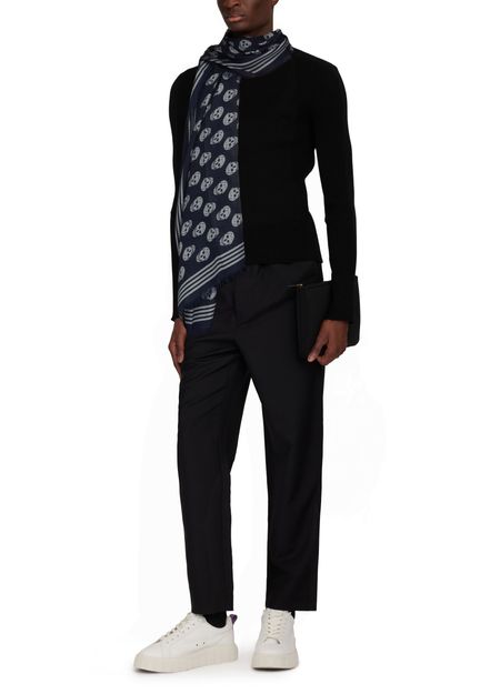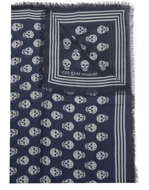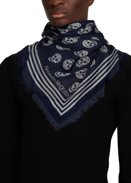 Alexander McQueen's biker scarf features raw edges and an oversized style for a modern, edgy look. The logo print along the edge adds a touch of sophistication to the edgy design, while the all-over print adds a bold statement to any outfit. A perfect accessory to elevate any ensemble.