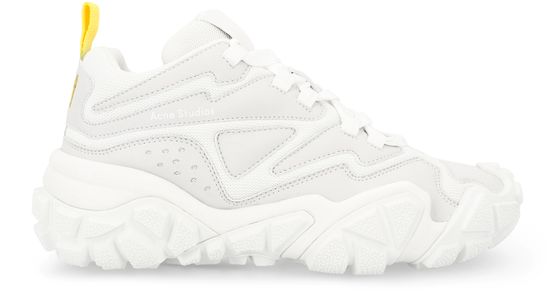 The Bolzter Bensen sneakers are designed by Acne Studios. These high, monochrome sneakers have a geometric design and are enhanced by a thick, stylised sole.