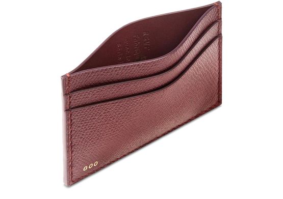 Editor's note : This cardholder is crafted from French calfskin leather and lined in Italian Nappa calfskin leather. Fitted with three side slots and one central slot, it can hold six to eight cards. The raw_edge finishes are dyed by hand. The gold_tone serial number is hot_stamped in the lower left_hand corner. 100% French made in our atelier in Franche_Comté.