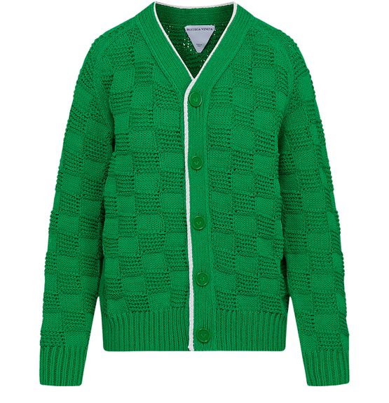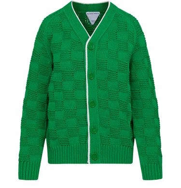 This long-sleeved knitted cardigan by Bottega Veneta fastens with buttons. It has a V-neck, ribbed finishes and a contrasting edging.