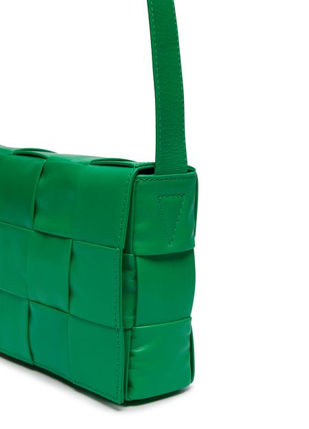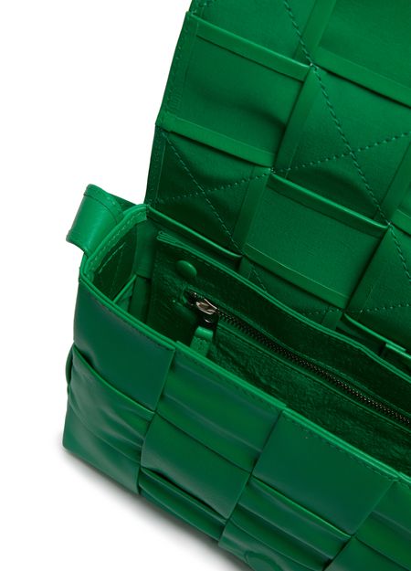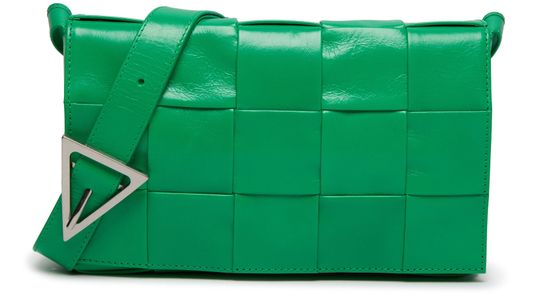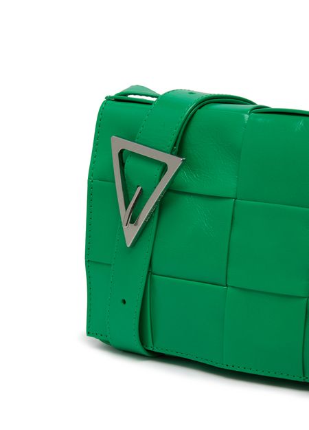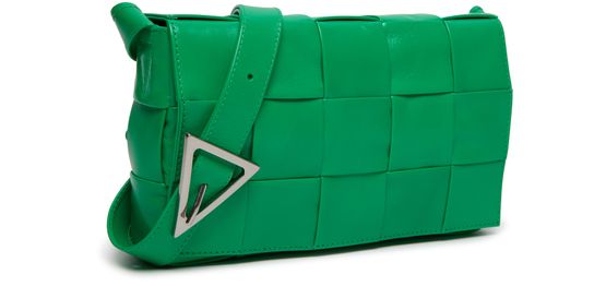 Bottega Veneta's Cassette bag features the brand's signature Intrecciato braiding, reflecting their iconic craftsmanship. It comes with a narrow adjustable strap for easy wearing. The bag is secured with a flap closure accentuated by the signature triangular buckle. Its sleek and timeless design makes it a must-have accessory for any occasions.