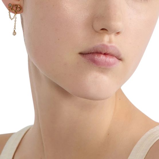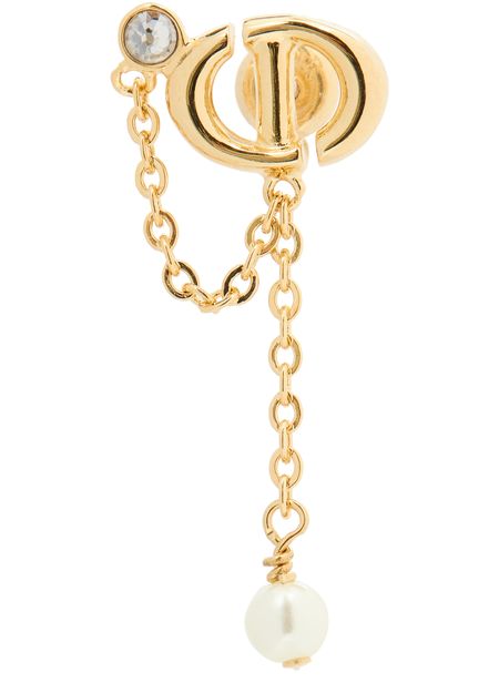 • Description : Resin pearls, silver-tone crystals, cD signature, gold-finish metal, push clasp, sold as a pair.