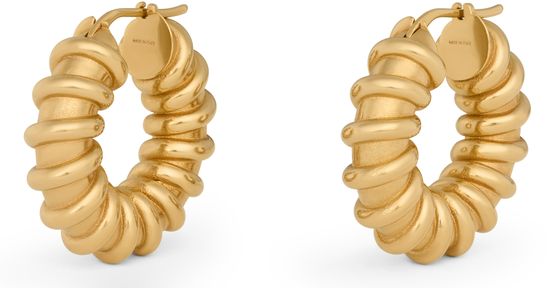 Discover the twisted hoop earrings Celine runway in gold-finish brass, engraved Celine earrings for pierced ears, a statement of refined elegance.