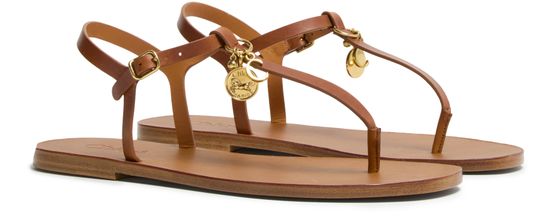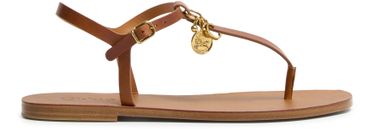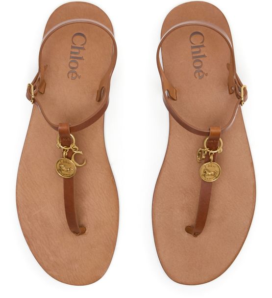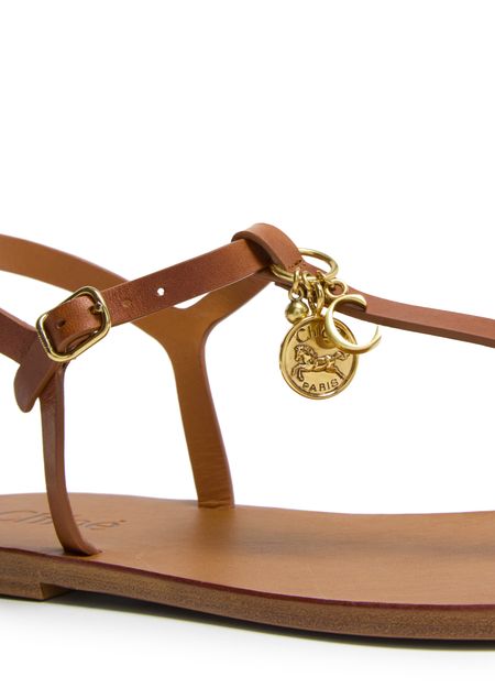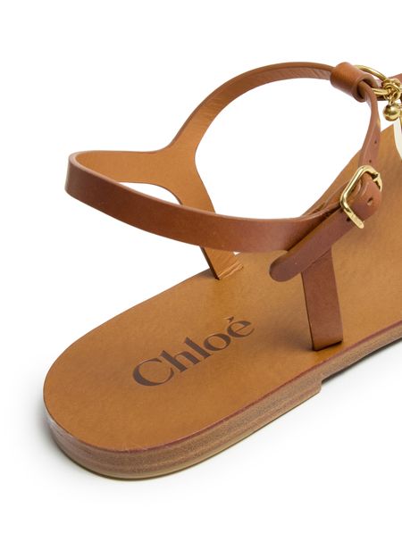 Reveal Chloé's Charms sandals designed with an open round toe and flat heel. The buckled ankle strap ensures a secure fit, while the logo-printed insole adds a touch of sophistication. Adorned with a metallic logo on the front and gold finish, these sandals are a stylish statement.