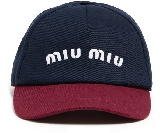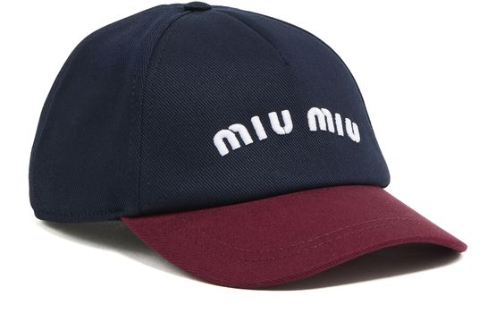 Miu Miu's Cotton baseball cap showcases a six-panel design that effortlessly combines style and functionality. Its embroidered logo adds a touch of elegance, while the visible stitching enhances its artisanal appeal. With a round crown and a curved visor, this cap is perfect for sunny days and casual outings.