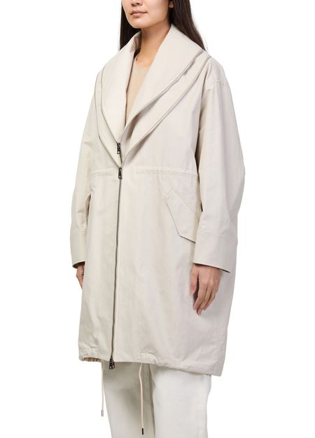 Reveal Givenchy's cotton parka with zip-up shawl collar, designed with a modern silhouette and long sleeves. The zipper closure and side pockets add practical flair, while the refined cotton fabric ensures comfort. Perfect for versatile styling, this piece transitions seamlessly from day to night.