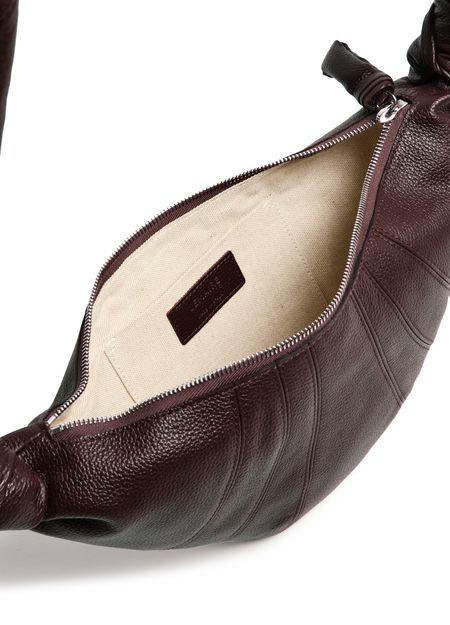Reveal Lemaire's Croissant small bag, crafted from grained leather with a padded texture for a refined touch. The single handle and zipper closure offer effortless sophistication, while the contrast lining and open interior pocket ensure both style and practicality in every detail.