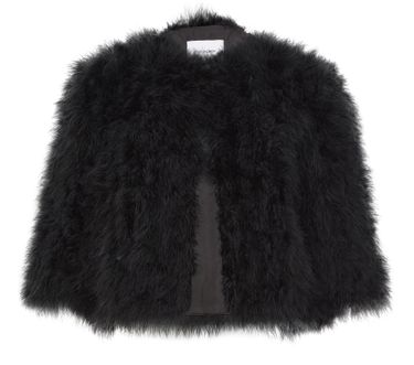 Unveil Yves Salomon's cropped feather jacket, a fusion of elegance and contemporary design. This short, collarless masterpiece features luxurious fur detail and stylish three-quarter sleeves, perfect for elevating any outfit with a touch of modern sophistication.
