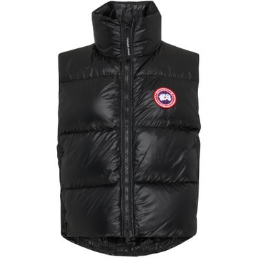 • Description : sleeveless, front logo, appliquéd logo, chest logo, high neck, zipper closure, side welt pockets, padded texture.