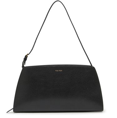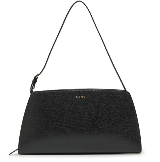 The Row's Dalia Baguette bag is a sophisticated accessory featuring a zipper closure and a single handle for effortless style. Adorned with a front logo in gold letters and visible topstitching, it embodies elegance. The adjustable thin strap adds versatility, making it perfect for any occasion while exuding timeless charm.