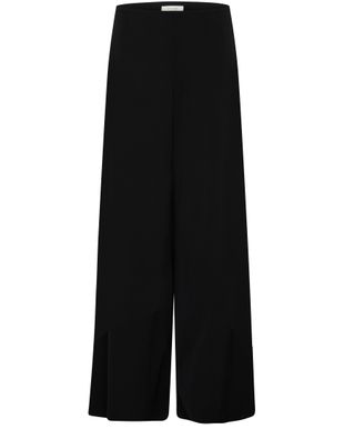 The Row's Dela wide-leg pants offer a high-waisted fit that effortlessly combines style and comfort. Featuring a side zipper closure and visible stitching, these ankle-length casual pants are perfect for any occasion. A subtle logo at the back label adds a touch of sophistication to this essential wardrobe piece.