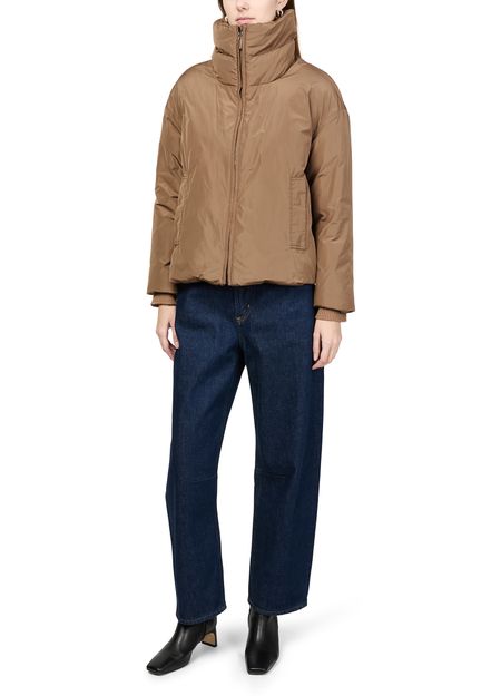Introducing Max Mara's Diego puffer jacket - THE CUBE. This short, long-sleeved jacket features a high neck and zipper closure, offering a sleek silhouette. With its padded texture and practical patch pockets, it's both stylish and functional. Perfect for versatile styling, from casual to formal occasions.