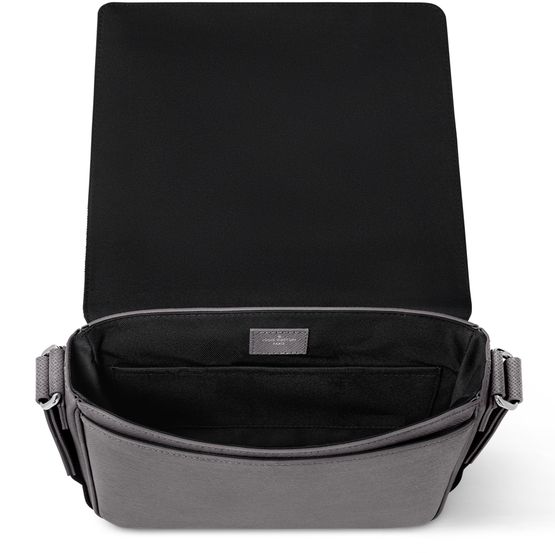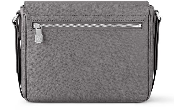 This District PM is fashioned from gray Taiga leather, a durable, small-grained cowhide. The flap closes magnetically to keep belongings safe and secure. There are three inside pockets and an outside zipped pocket on the back for quick access to essentials. The webbing strap adjusts for comfortable shoulder or cross-body wear.