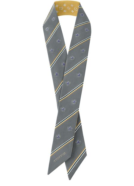The Dog Crest bandeau is infused with an academic spirit that doesn't take itself too seriously, courtesy of the Dog Coat of Arms. Fashioned from silk, the slender grey style is also adorned with slender diagonal stripes. Together, this special mix of details creates an elegant yet accessible look.