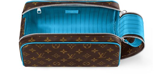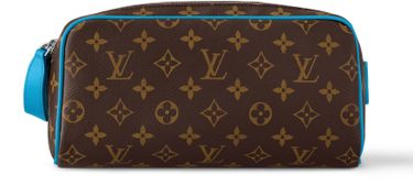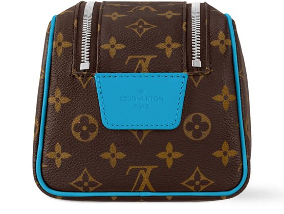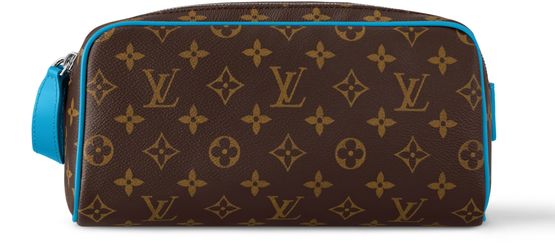 Sturdy and practical, the Dopp Kit in Monogram Macassar coated canvas is adorned with colored piping and colored leather on the handle attached to the double zipper. Designed for storing grooming essentials and toiletries, it has a washable lining in the same color as the color of the exterior details.