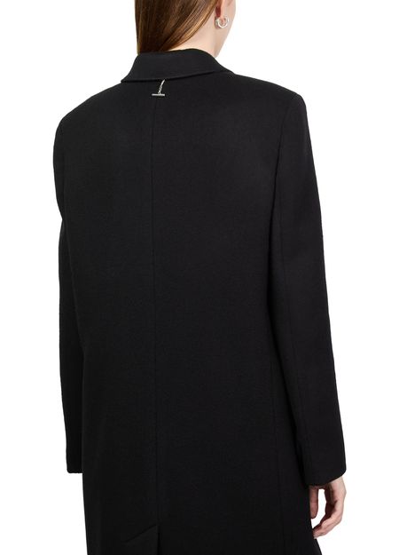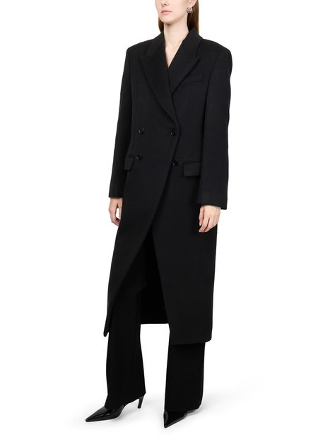 Introducing Alexander McQueen's double breasted coat, a masterpiece of regular fit and long silhouette. This classic overcoat features a sophisticated collar and practical flap pockets. The long-sleeved design with a double-breasted closure ensures elegance and functionality, making it perfect for both formal and casual occasions.