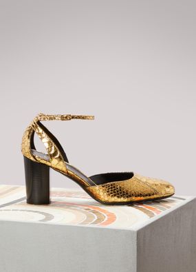 Michel Vivien is a passionate shoe designer. Influenced by art, his collections give women what they want and need. The designer revisits classic Mary Janes with these Egemone Leather Pumps in snakeskin-printed leather. These pumps bring a touch of imagination to a black dress with the contrasting red and gold on this geometric piece.