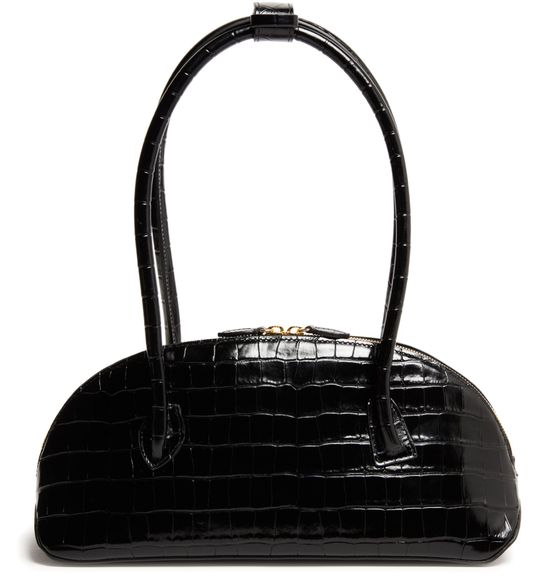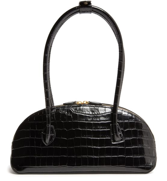 Reveal Liffner's EW Dome handbag, crafted from crocodile-embossed leather with a padded texture. Double handles and a zipper closure offer both style and security, while the spacious interior compartment and interior patch pockets ensure effortless organization for your essentials.