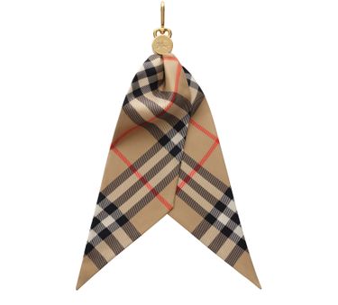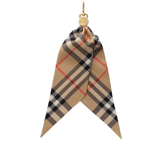 Reveal Burberry's foulard silk keyring, where a refined gold finish meets the iconic checked pattern for a sophisticated accent. This accessory’s sleek design and signature motif elevate any set of keys or bag, offering a versatile way to showcase timeless British style with every detail.