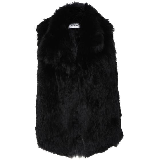Introducing Yves Salomon's fox fur gilet, a masterpiece of suede elegance. This sleeveless, regular fit piece features exquisite fur detailing, offering a chic silhouette. Its short length and luxurious leather and fur style make it a versatile addition to any wardrobe, perfect for both casual and formal occasions.