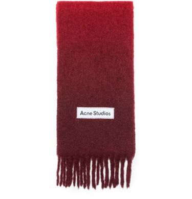 Reveal Acne Studios's checked wool scarf, a statement piece with fringed edges and a bold front logo. This accessory effortlessly elevates any look, blending modern design with timeless appeal for a refined finish.