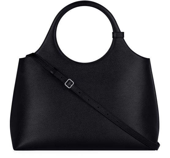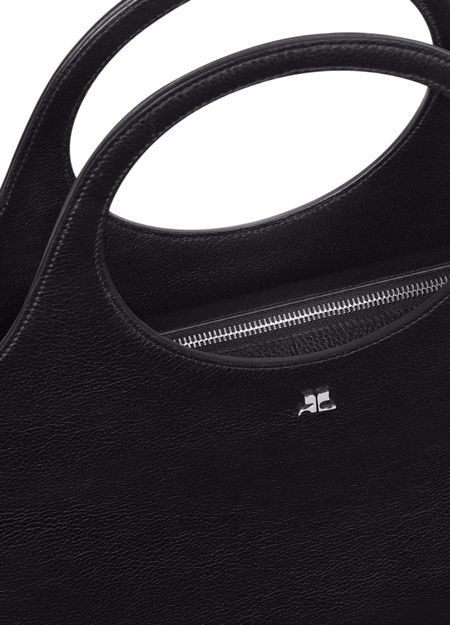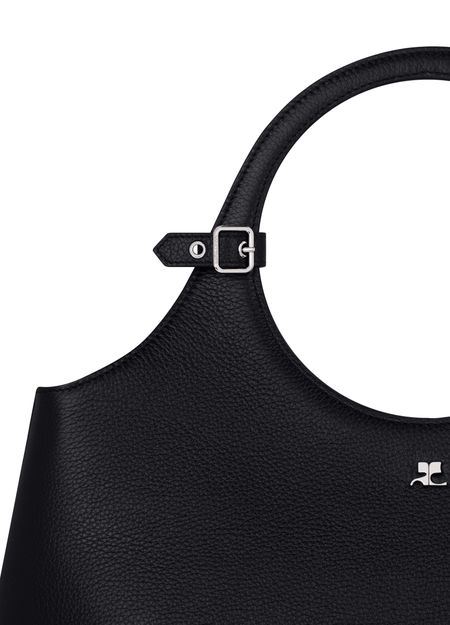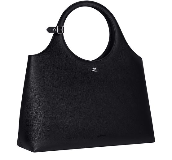 Unveil Courrèges's Holy Day grained large handbag, crafted from exquisite grained leather. This tote features a single handle and an adjustable thin strap, ensuring versatile charm. Its zippered interior pocket and visible topstitching accentuate its elegant function, while the front logo and silver finishes add a signature touch.