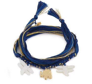 Aurélie Bidermann's Honolulu bracelet is ideal for summer. The gold and dark blue threads surround three charms.