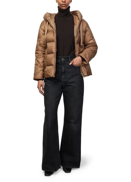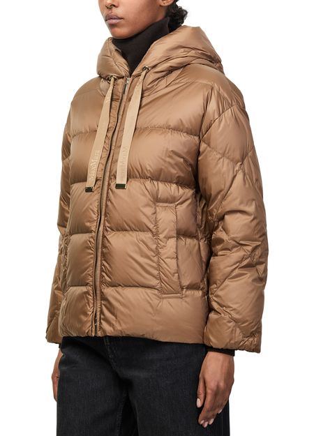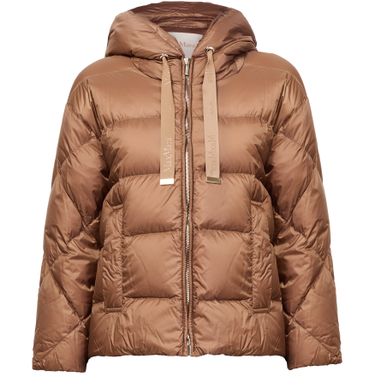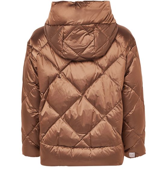 Reveal Max Mara's hooded puffer jacket, a short silhouette with a modern edge. The zipper closure and welt pockets add practical flair, while the diamond pattern and padded texture create a striking look. Perfect for versatile styling, this piece transitions seamlessly from day to night.