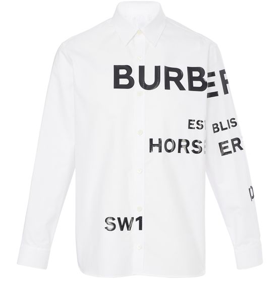 An oversized shirt in Oxford cotton, wrapped in a high-shine Horseferry print.