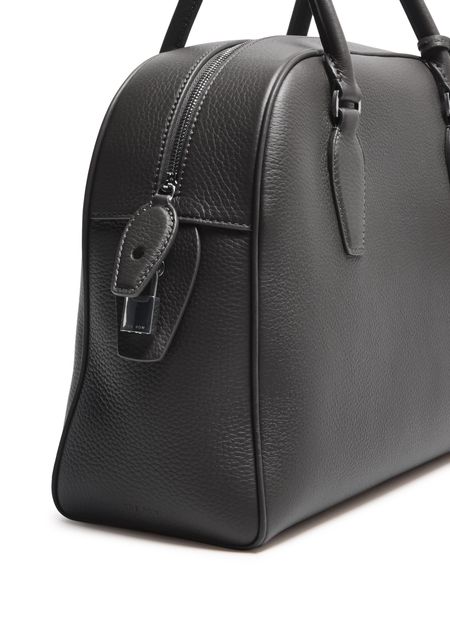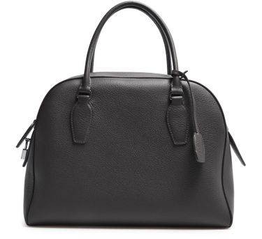 Reveal The Row's India 12 handbag, crafted from grained leather for a refined touch. Double handles and a zippered closure offer both style and security, while visible stitching and a spacious interior with a zippered pocket ensure practical elegance for everyday sophistication.