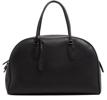 The Row's India 15.75 handbag showcases a sleek design with a zipper closure and a single compartment for essentials. Its double handles allow for hand carrying, while a thin strap offers versatility. Visible topstitching adds a touch of sophistication, making this accessory a perfect blend of elegance and functionality.
