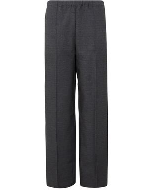 Introducing Miu Miu's knit straight leg trousers, a perfect blend of style and comfort. These casual pants feature an elasticated waist and ankle length, ensuring a relaxed fit. The embroidered "Miu Miu" logo and visible stitching add a touch of elegance, while front pleats enhance their chic appeal.