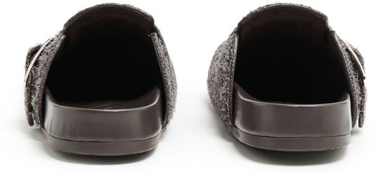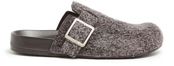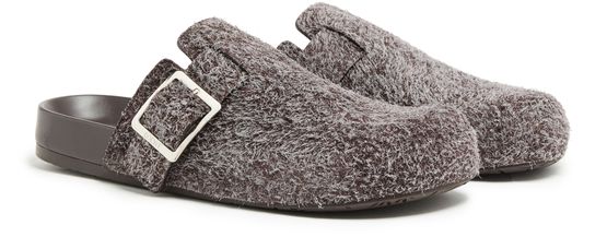 Step into elegance with Loewe's Leather mules, featuring a round toe and flat heel for effortless style. The visible stitching adds a touch of craftsmanship, while the sleek silver finish elevates any outfit. Perfect for day or night, these closed mules are a must-have for the modern wardrobe.