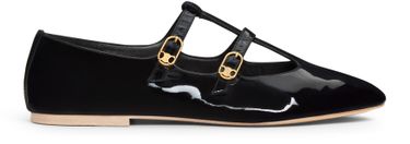 Celine's Les ballerines Celine babies in patent calfskin embody elegance and comfort. With a stacked leather heel and almond toe shape, these shoes feature an adjustable double strap adorned with Triomphe buckles. The slightly padded leather insole ensures all-day wear, while the leather outsole provides durability. Made in Italy, they fit true to size, making them a perfect addition to any wardrobe.