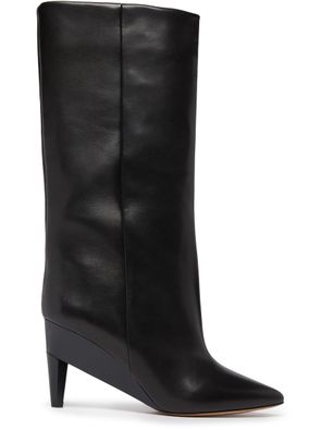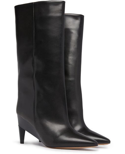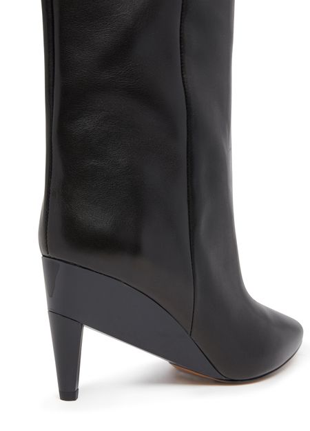 Isabel Marant Liesel boots are a stylish addition to any wardrobe. Made from smooth leather, these boots feature a pointed toe and sleek shape, with a high-top upper and pull-on design for easy wear. The unique heel adds a touch of personality to these versatile boots.