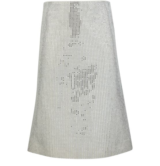 This linen skirt designed by Bottega Veneta dresses up your figure in a festive way. In addition to a crystal effect that draws the eye, this skirt with a flared shape combines elegance and nonchalance. Featuring a high waist, it pairs well with a high-necked top or off-white silk blouse combined with a pair of heels for a sleek look.