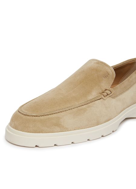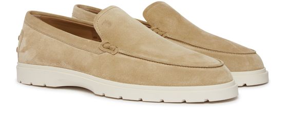 • Description : Loafers, contrasting sole, visible stitching, topstitched pleats, notched sole.