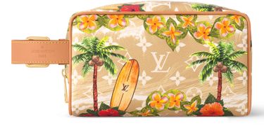 The Locker Dopp Kit is fashioned from Pharrell Williams’ colorful Monogram Surfin’ coated canvas with cowhide leather trim. Ideal for storing grooming essentials, the Dopp can also be used as a stylish little bag. The wide adjustable handle can be used to hang it on a hook or for hand carry.