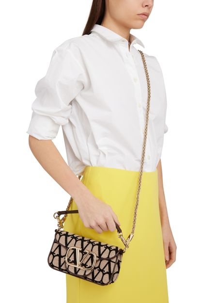 Loco small shoulder bag is a stylish accessory with a chain strap and a convenient handle for versatile wear. Its flap closure adds a touch of elegance, while the all-over logo design showcases the brand's signature charm. Finished with a metallic logo on the front, this bag is both chic and sophisticated.