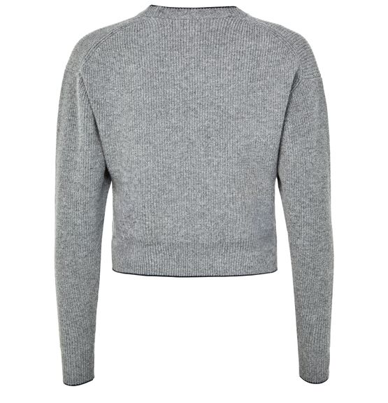 Reveal Chloe's embroidered knit sweater, featuring a round neck and raglan long sleeves for a refined silhouette. The ribbed texture and front embroidered logo add a distinctive touch, making this piece effortlessly versatile for both casual and elevated looks.