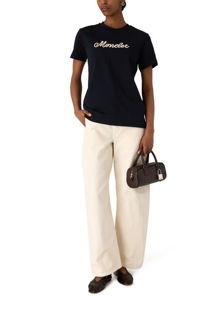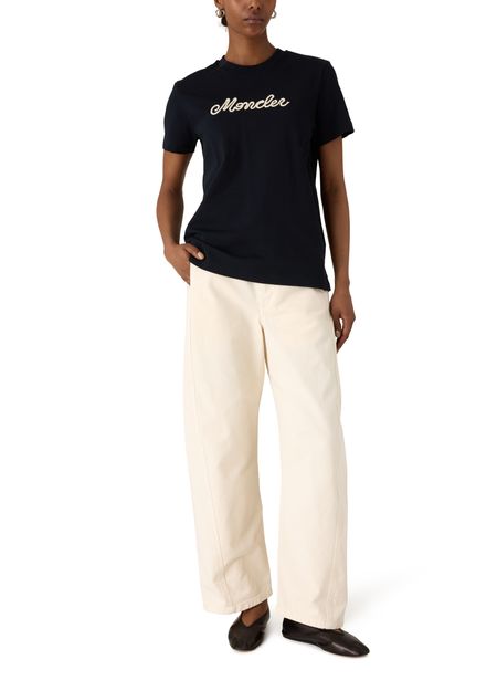 Reveal Moncler's Logo t-shirt, offering a refined silhouette for any occasion. The chest logo adds a signature touch, while the soft fabric ensures comfort. Pair this versatile top effortlessly with jeans or tailored pants for a polished look.