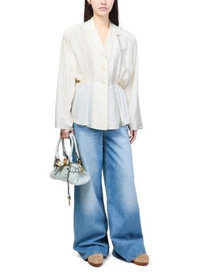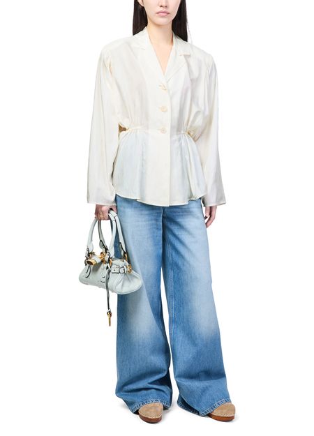 Reveal Chloe's long-sleeved shirt, defined by its gathered waist and refined button fastening. The tailored silhouette and elegant long sleeves create a polished look, while the subtle details offer versatile styling for both casual and sophisticated ensembles.
