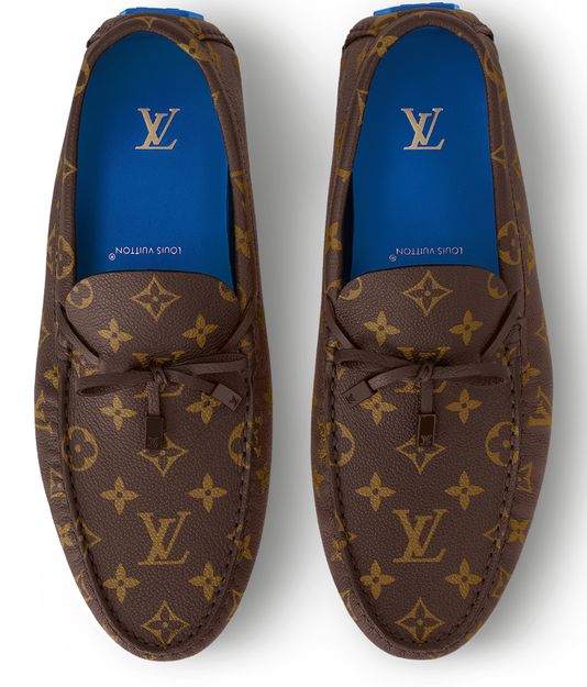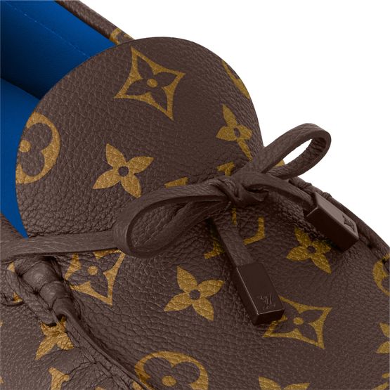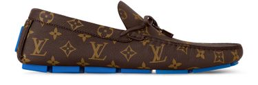 This refined iteration of the LV Driver moccasin comes in supple grained calf leather printed with the iconic Monogram pattern. A contrasting outsole and lining complement this design, which is notable for its lightweight, tubular construction and traditionally hand-stitched vamp. It comes on an extremely flexible outsole of large rubber pads.