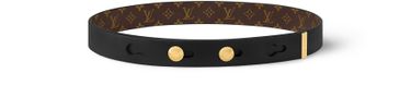 The strikingly original LV Studs 29mm Belt pays homage to Louis Vuitton’s luggage-making heritage. A smooth leather strap is adorned with two signature-engraved studs in gold-tone metal, recalling the rivets on the House’s historic trunks. And they serve a practical function, adjusting the size and offering a choice of straight or crisscrossed wearing styles.