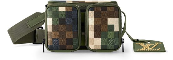 The LV Trail Wearable Wallet in Damoflage canvas, Creative Director Pharrell Williams’ pixelated camouflage pattern, is extremely functional. There are two removable front pouches, ideal to store AirPods, keys, cards or a charger, and a main zipped compartment for a phone and wallet. There are many carry options, for example, as a belt or cross-body.