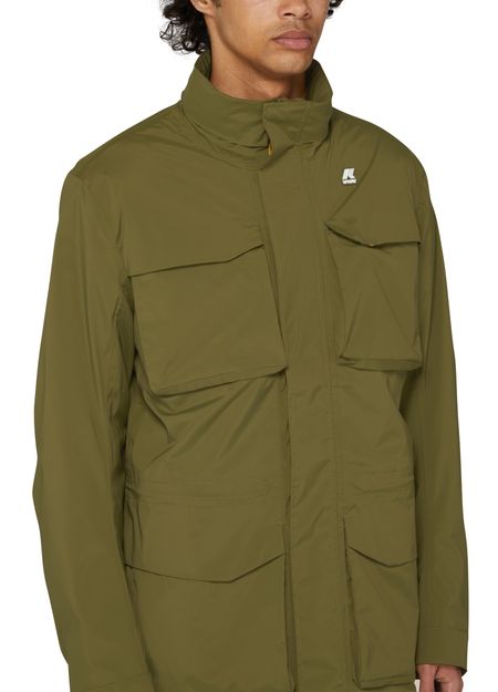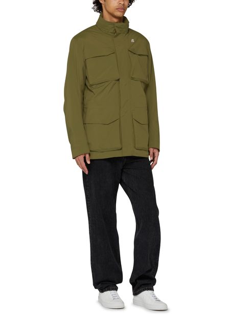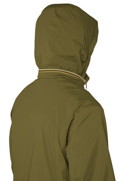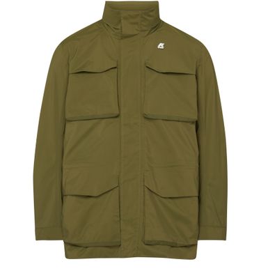 K-way's Manphy puffer jacket is a versatile and stylish choice for chilly weather. It features a concealed zipper and snap fastening for a clean look. With a breast pocket, flap pockets, and a large front pocket, there is plenty of storage space. The long-sleeved jacket also includes a hood, front logo, chest logo, and logo at the back label for added branding details.